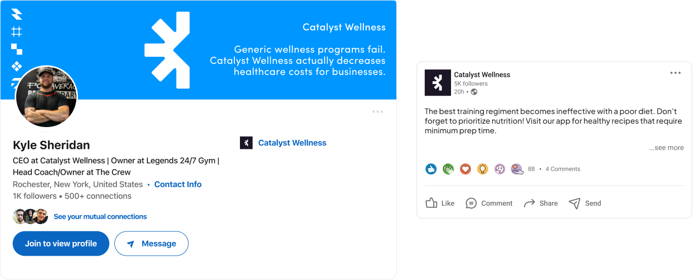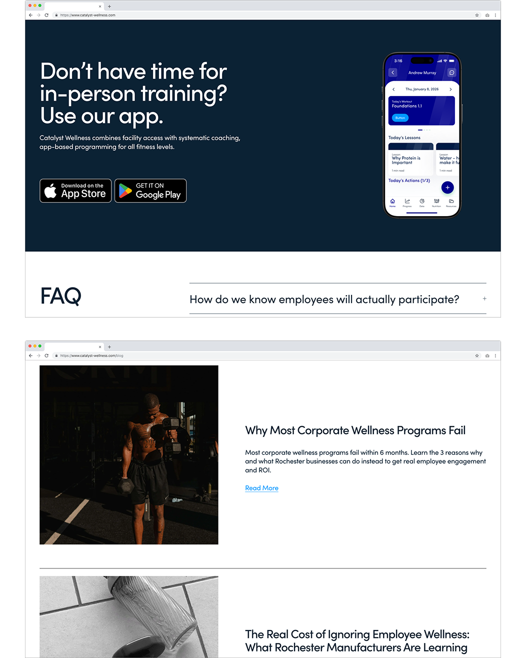 Before this engagement, Kyle had a gym, a coaching app, and a vision. What he didn't have was a way to walk into a meeting with an HR director and be taken seriously as a corporate wellness partner. Now he does. Every touchpoint, from the first Google search to the pricing conversation, communicates the same thing: this is a proven, systematic approach to employee wellness, built and led by someone who's spent his career producing measurable results.